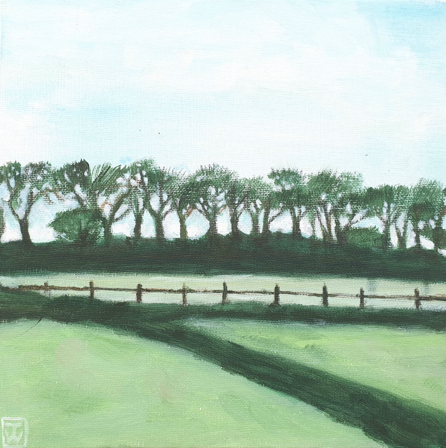 I made this painting after a trip from Drenthe to Amsterdam. The lines of the Dutch fields. The painting prompted a conversation with a fellow artist about 'what is a line?'.